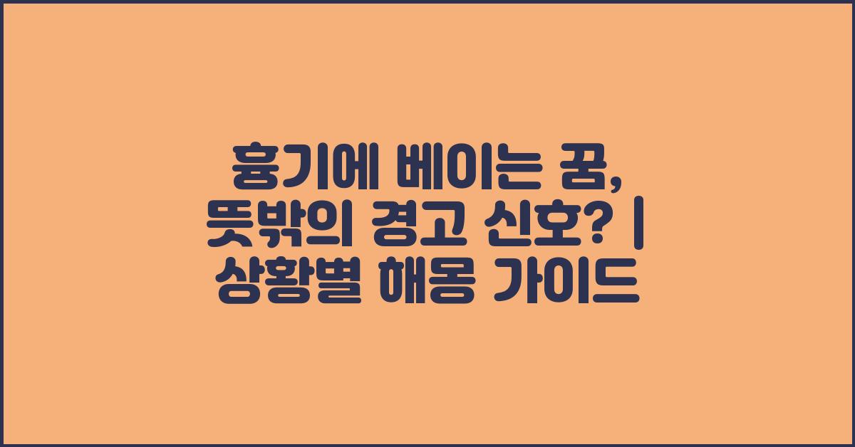 꿈은 종종 우리의 내면을 반영하며, 그 속에 숨겨진 의미는 의외로 깊습니다. 특히 흉기에 베이는 꿈은 많은 이들에게 강렬한 인상을 남깁니다. 이런 꿈을 꾼 후에는 '어떤 의미일까?' 하는 질문이 자연스럽게 떠오르죠. 흉기에 베이는 꿈, 상황별 해몽 가이드를 통해 그 의미를 살펴보겠습니다.