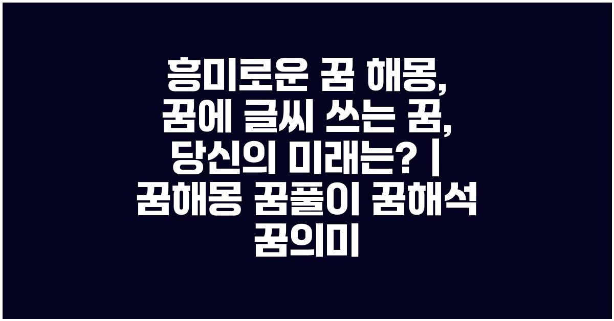 꿈은 우리 무의식의 창이며 신비롭고도 흥미로운 영역입니다. 특히 흥미로운 꿈 해몽: 꿈에 글씨 쓰는 꿈의 의미 | 꿈해몽 꿈풀이 꿈해석 꿈의미는 많은 이들에게 궁금증을 불러일으킵니다. 꿈 속에서 글씨를 쓰는 장면은 어떤 의미를 가질까요? 우리는 이 꿈이 내포한 여러 메시지를 통해 우리 미래의 단서들을 발견할 수 있습니다.