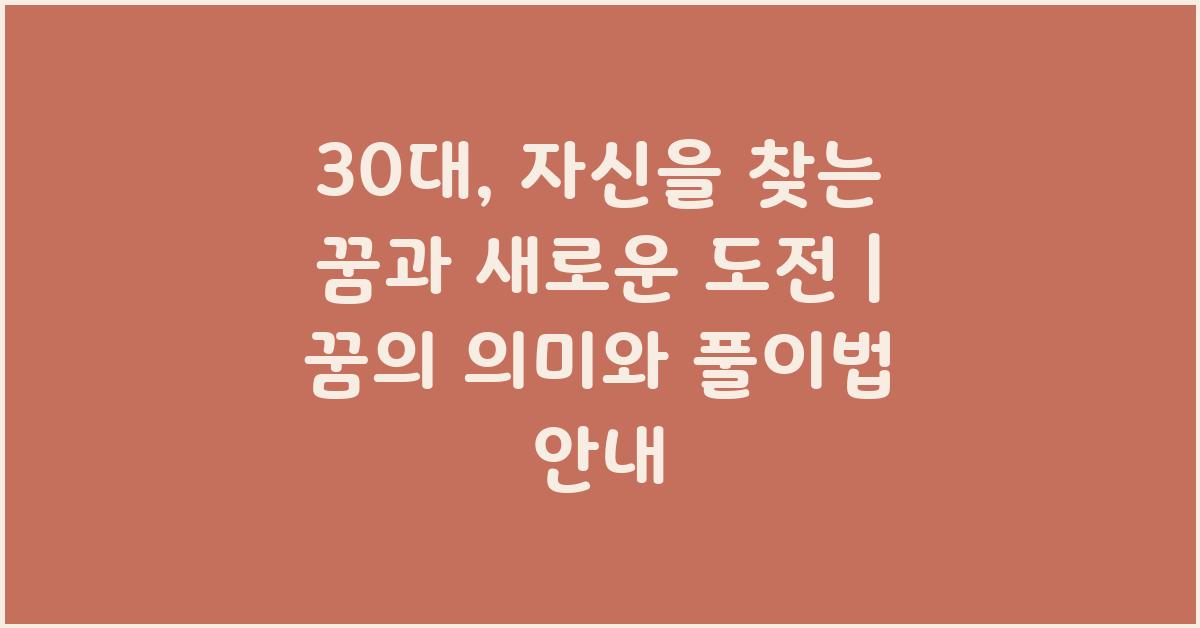 30대, 자신을 찾는 꿈과 새로운 도전은 항상 상호작용하고 있습니다. 자신의 정체성을 탐구하는 과정에서 꿈이 제공하는 메시지는 결코 무시할 수 없죠. 꿈해몽을 통해 우리는 더 나은 의사결정을 할 수 있는 길을 엿보게 됩니다. 그리고 꿈이 던지는 의문들을 통해 우리는 자아를 발견하게 되는 것이죠.
